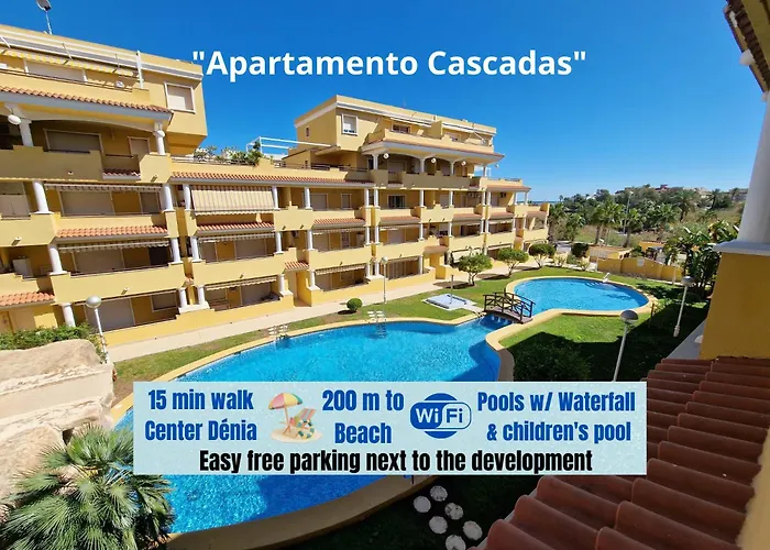 Apartmán Apartamento Cascadas Cerca De Playa Y Centro Denia, umístěný 13 minut chůze od Hrad a archeologické muzeum ve městě Dénia, nabízí terasu s plaveckým bazénem. Pláž Les Marines je nedaleko, a Přístav trajektů Denia je vzdáleno 1 km.